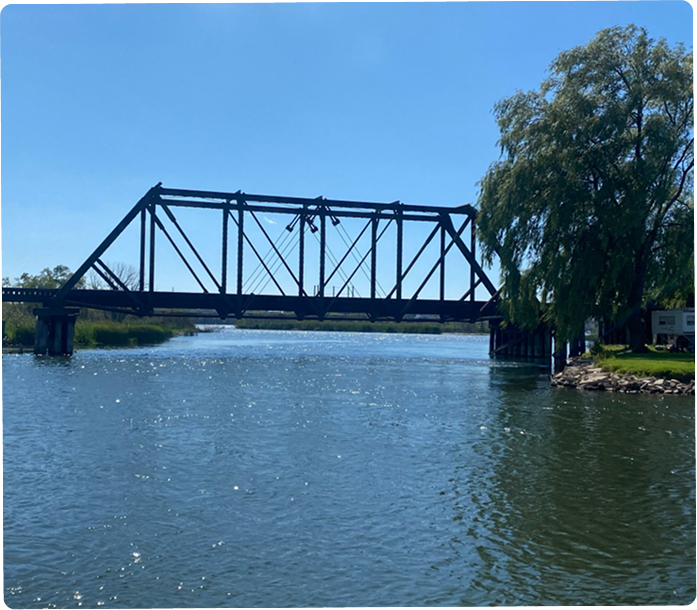 The Manistee County Safer Southern Rail Route Study responds to traffic delays and safety concerns due to the lack of a railway connection south of Manistee Lake. Manistee County studied potential southern rail route alternatives. The Bridge Across the Lake alternative is anticipated to be the least impactful. One of which would consist of a bridge across Manistee Lake and the other two would consist of a bridge around the southern bank of the lake over the wetlands. Conceptual plans and cost estimates for these alternatives have been developed and are being submitted to the Federal Rail Administration (FRA) and the railroad owner and operator, CSX and Marquette Rail, respectively.